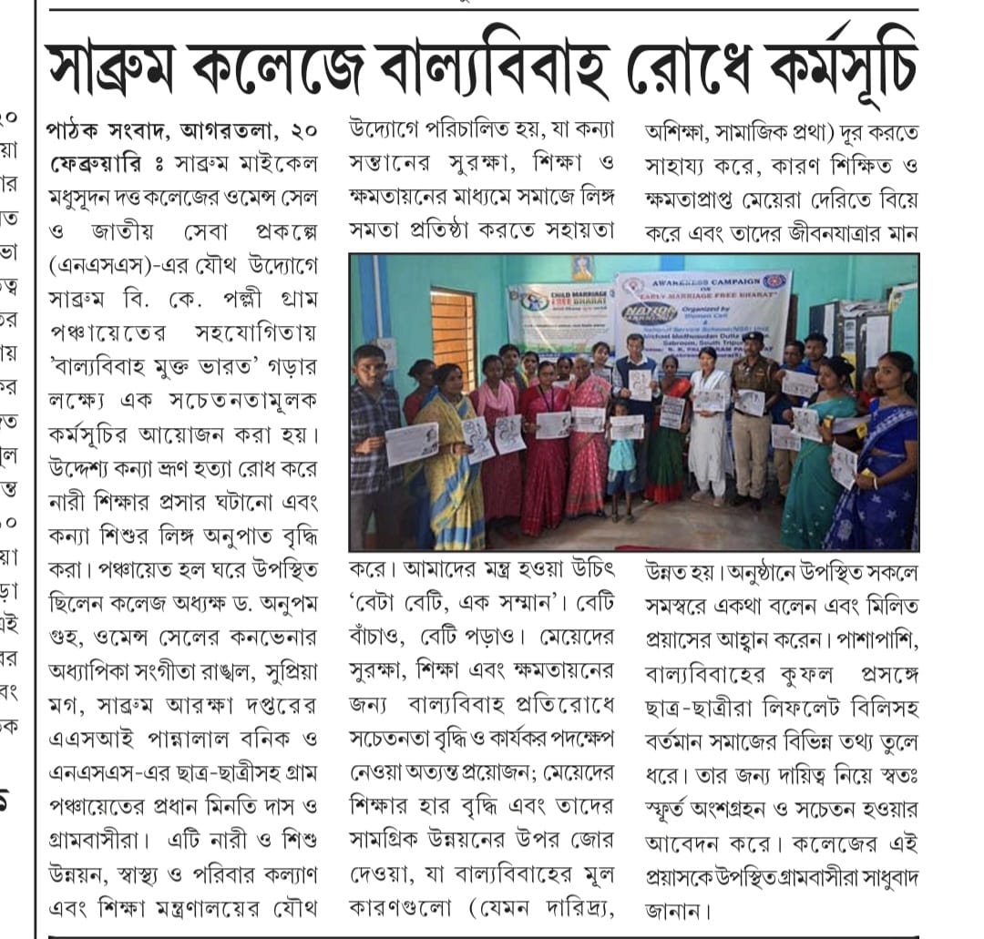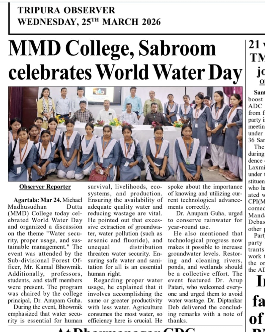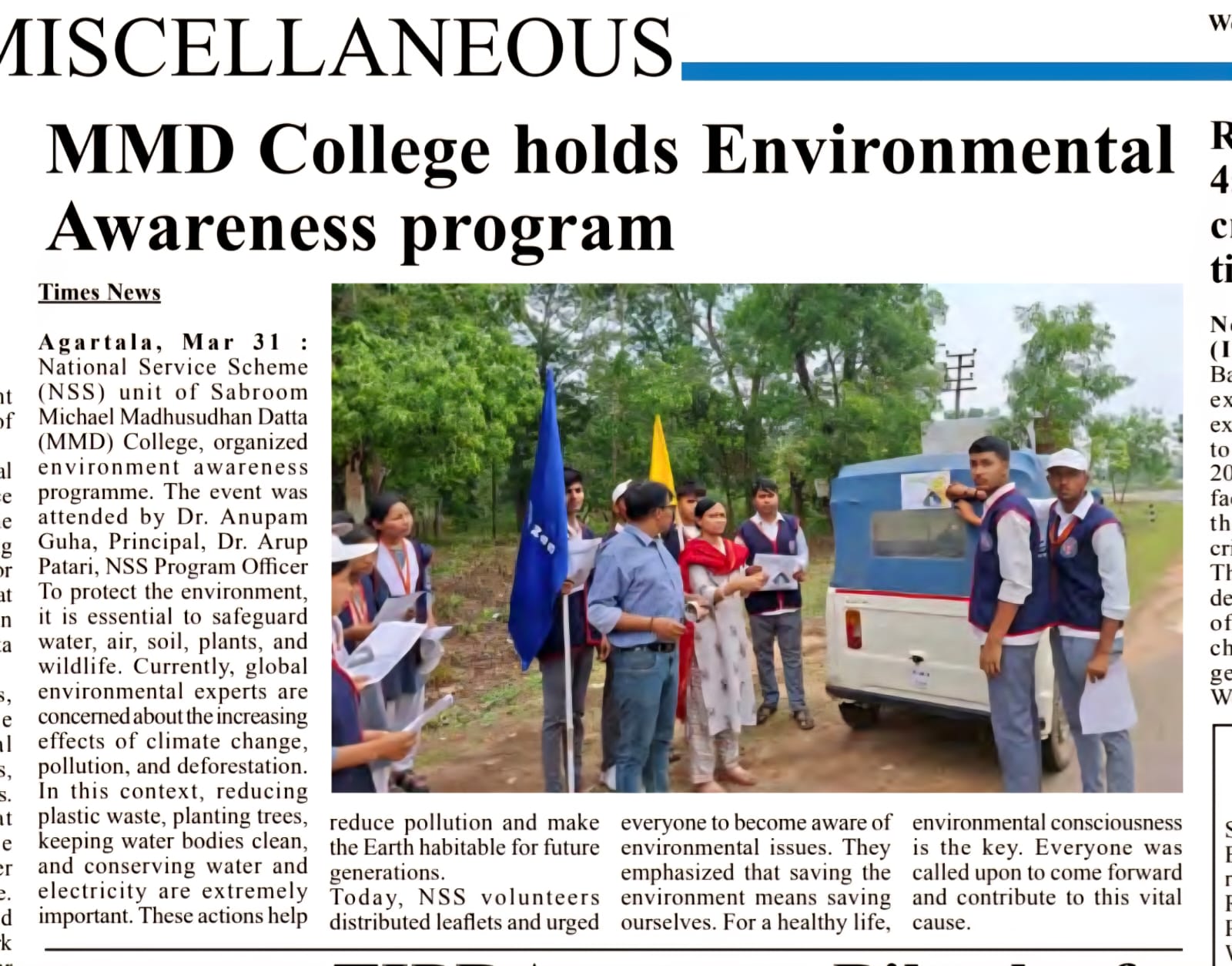 - 03/01/2024 Memorandum to participate in Swaccha Bharat Abhiyan jointly by SDH(Sabroom Dist Hospital) & NSS Unit, MMD Collece