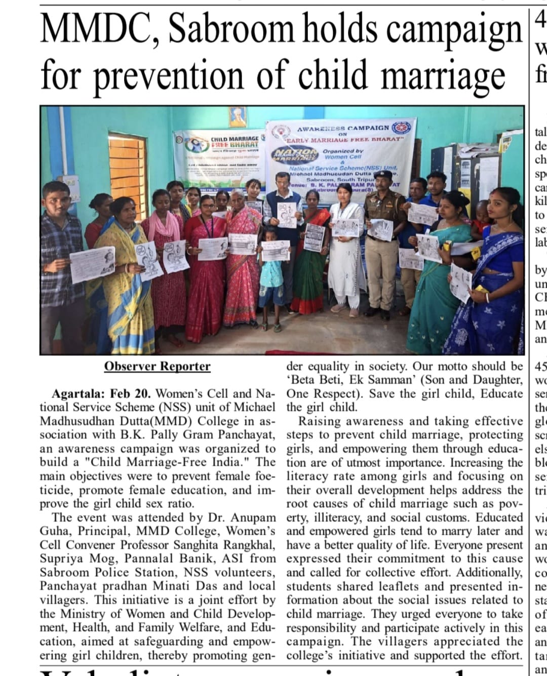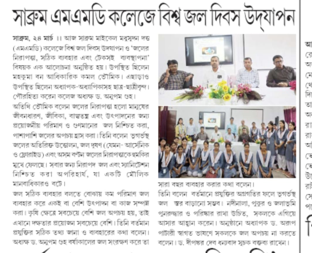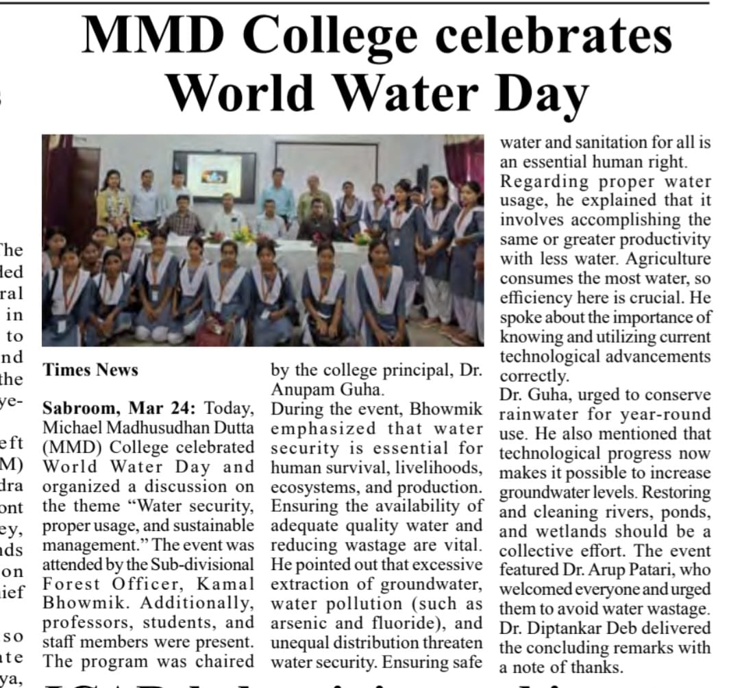 - 03/01/2024 Memorandum to participate in Swaccha Bharat Abhiyan jointly by SDH(Sabroom Dist Hospital) & NSS Unit, MMD Collece