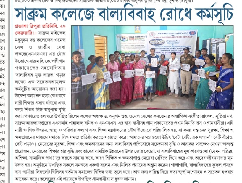 - 20/01/2024 Notice to attend the Health Camp organized jointly bt NSS, MMD College and Sabroom Sub-Divisional Hospital at Purba Jalefa Gram Panchyat Hall Ghar