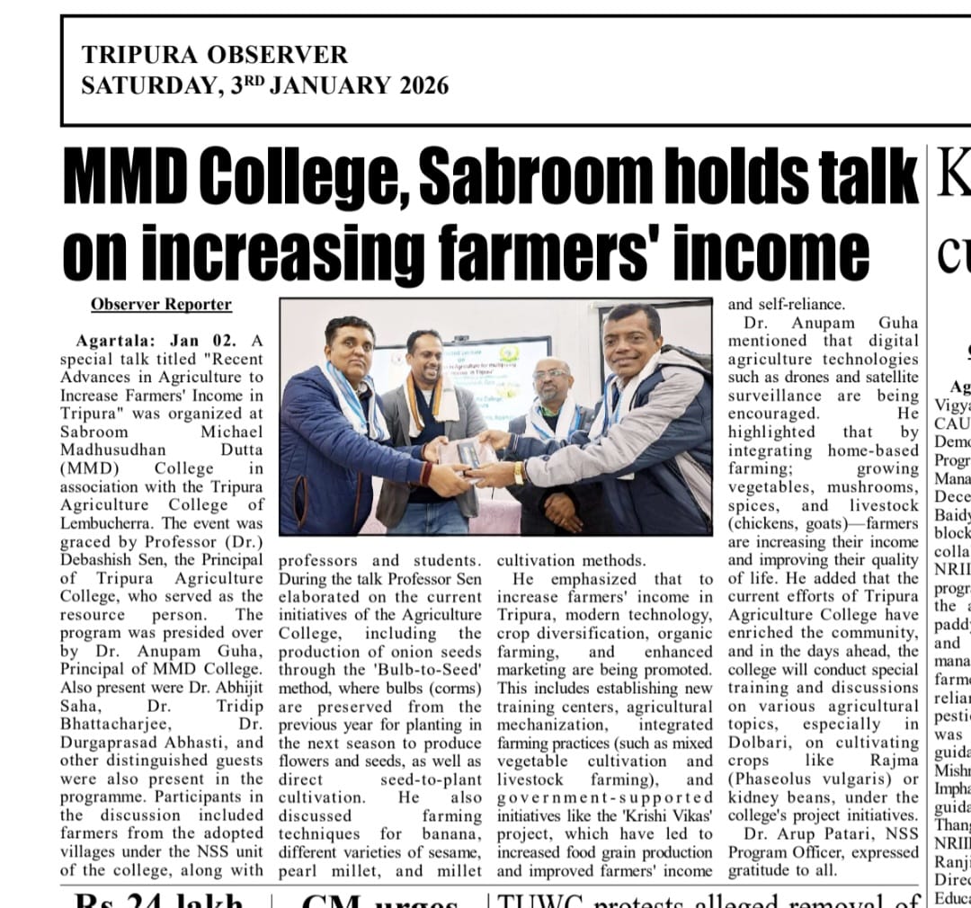 - 01/01/2026 Notice to attend the Invited Lecture on Recent progress in Agriculture for multiplying farmers income in Tripura