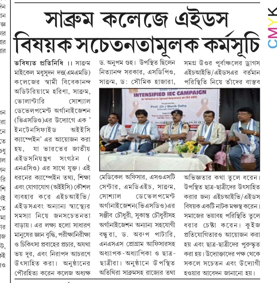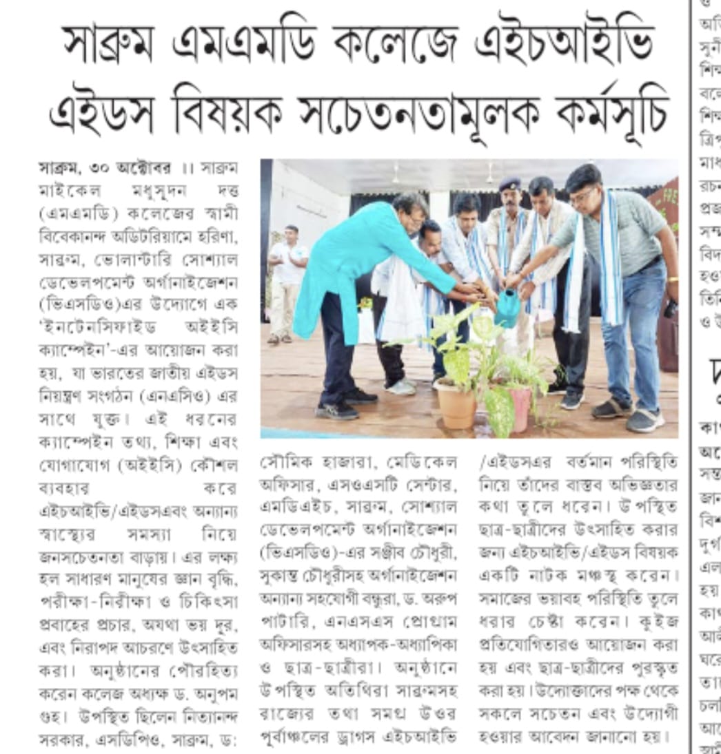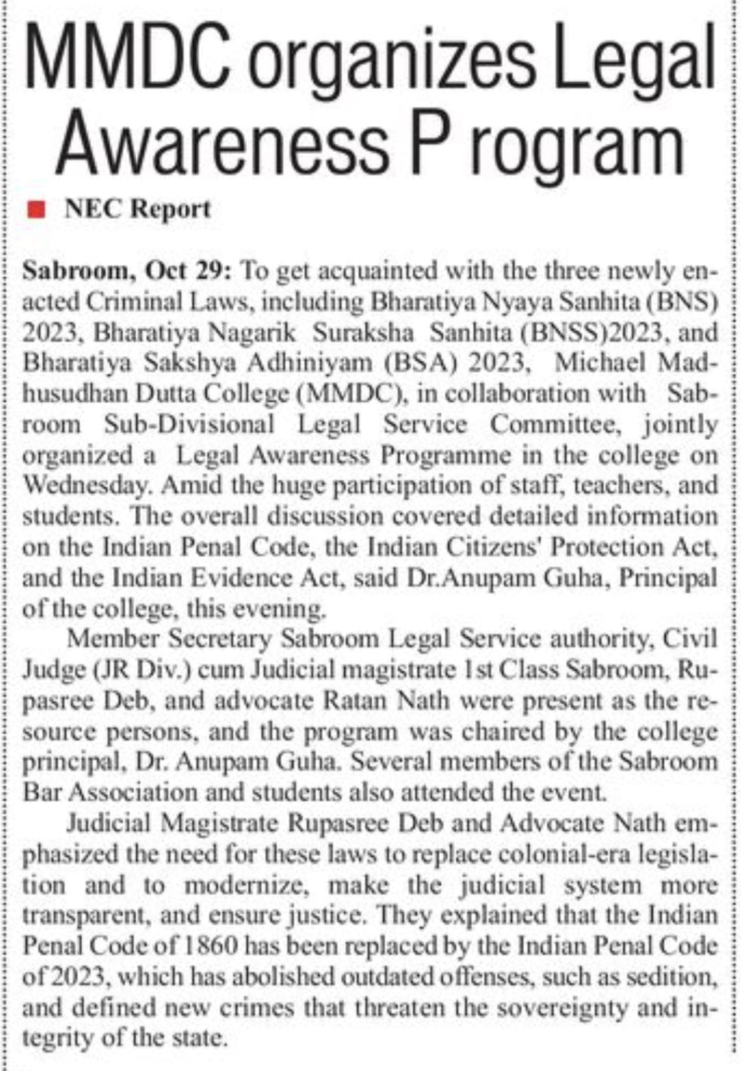 - 03/01/2024 Memorandum to participate in Swaccha Bharat Abhiyan jointly by SDH(Sabroom Dist Hospital) & NSS Unit, MMD Collece