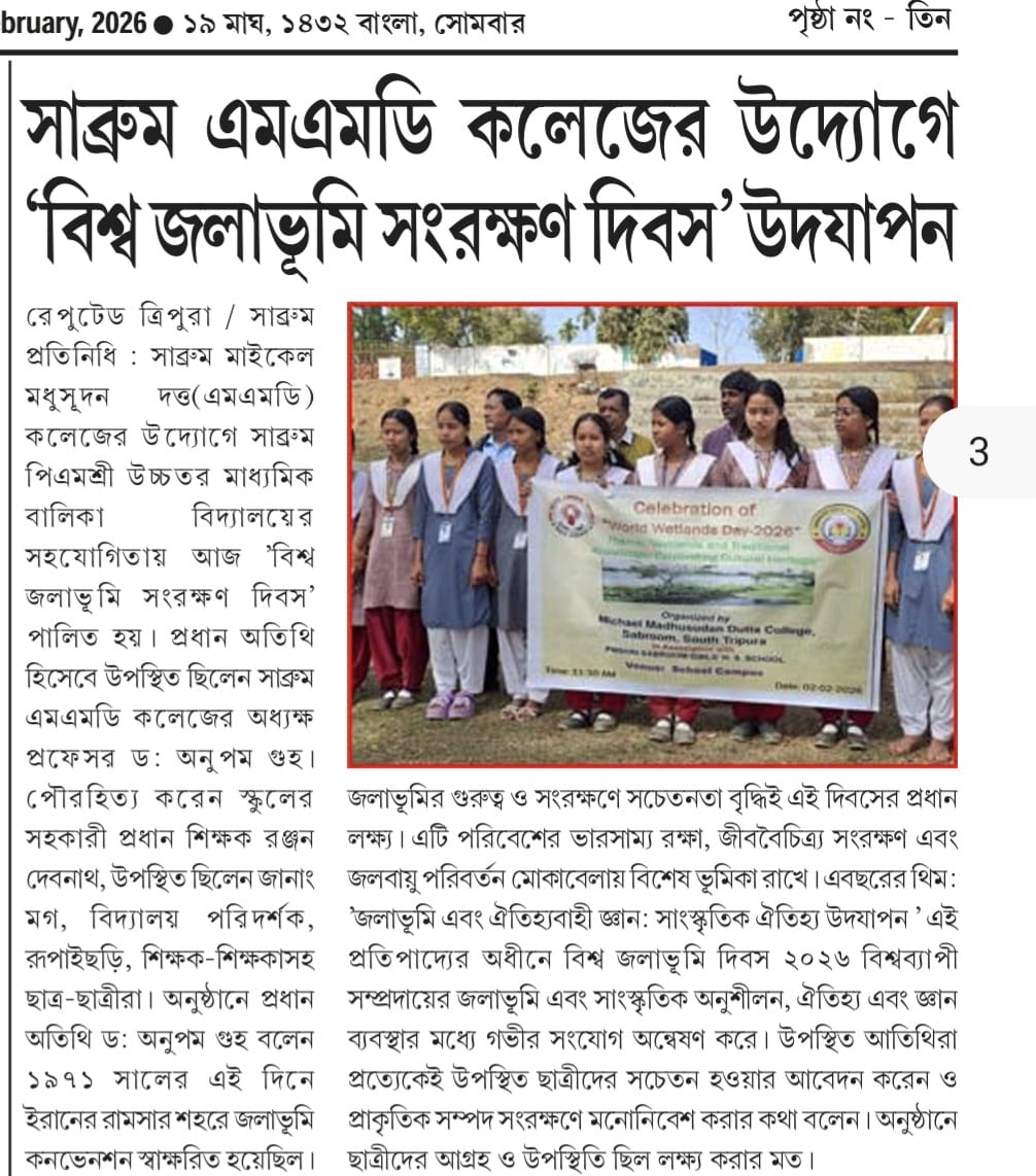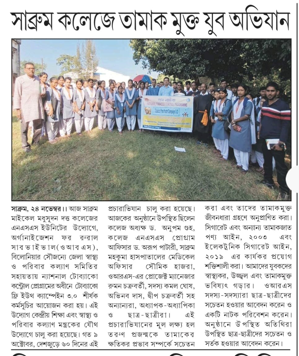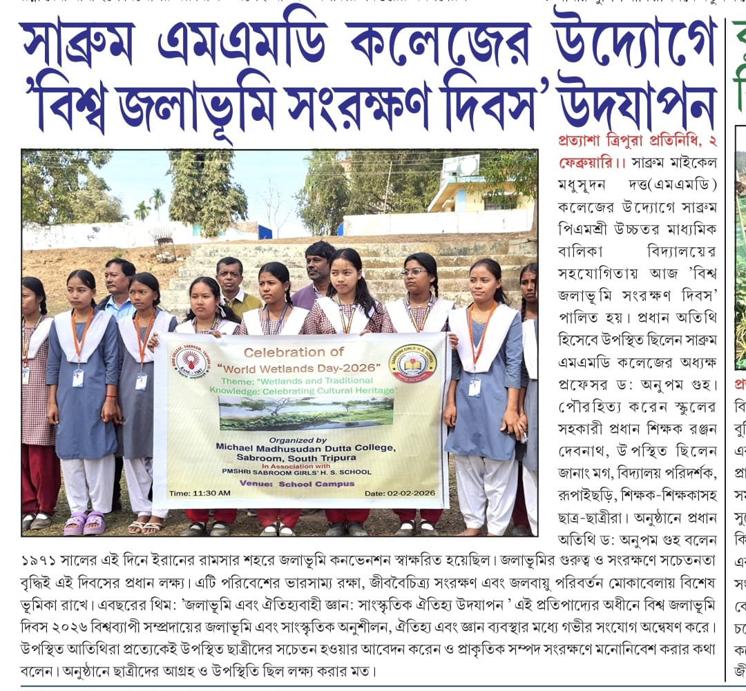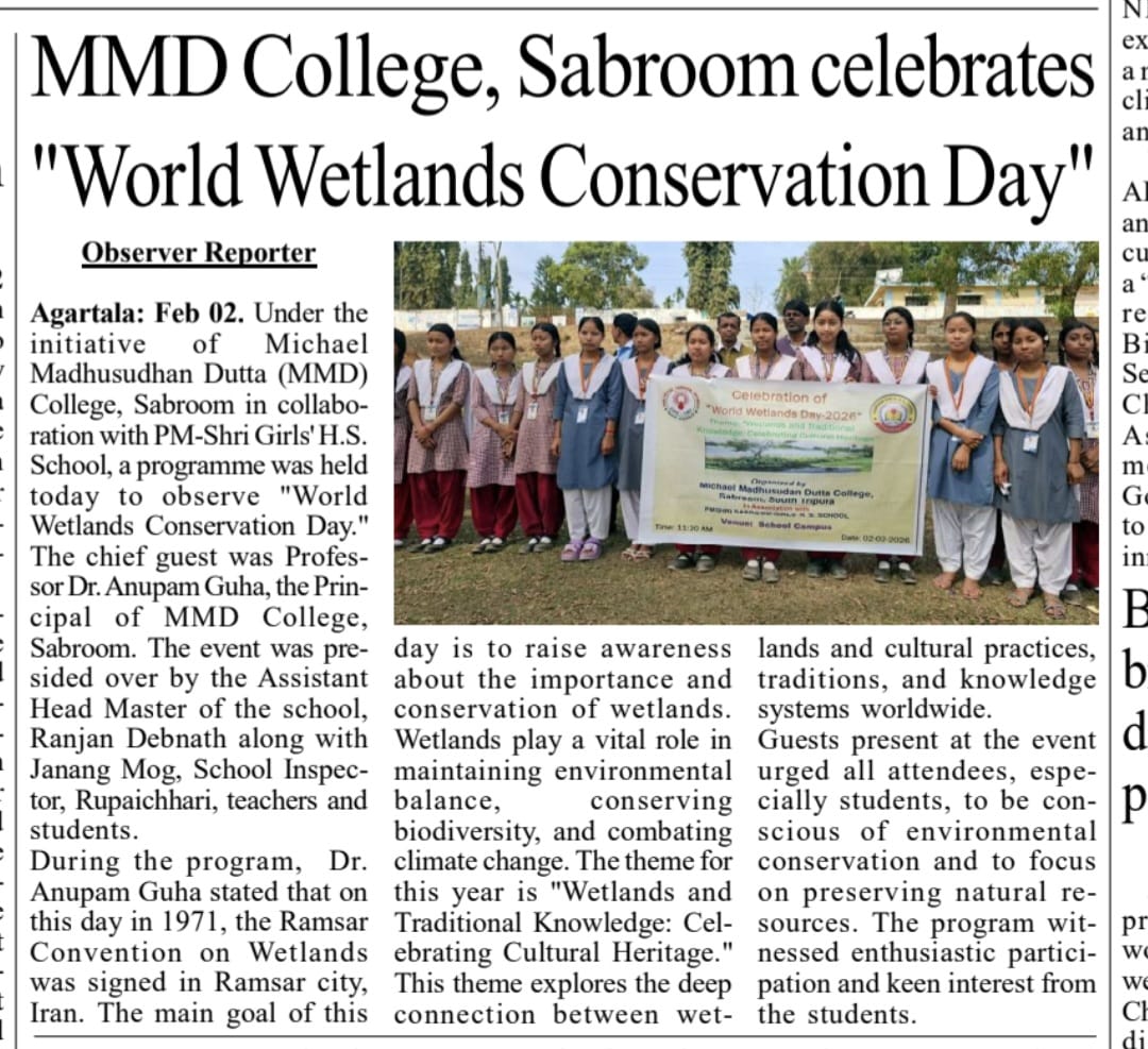 - 03/01/2024 Memorandum to participate in Swaccha Bharat Abhiyan jointly by SDH(Sabroom Dist Hospital) & NSS Unit, MMD Collece