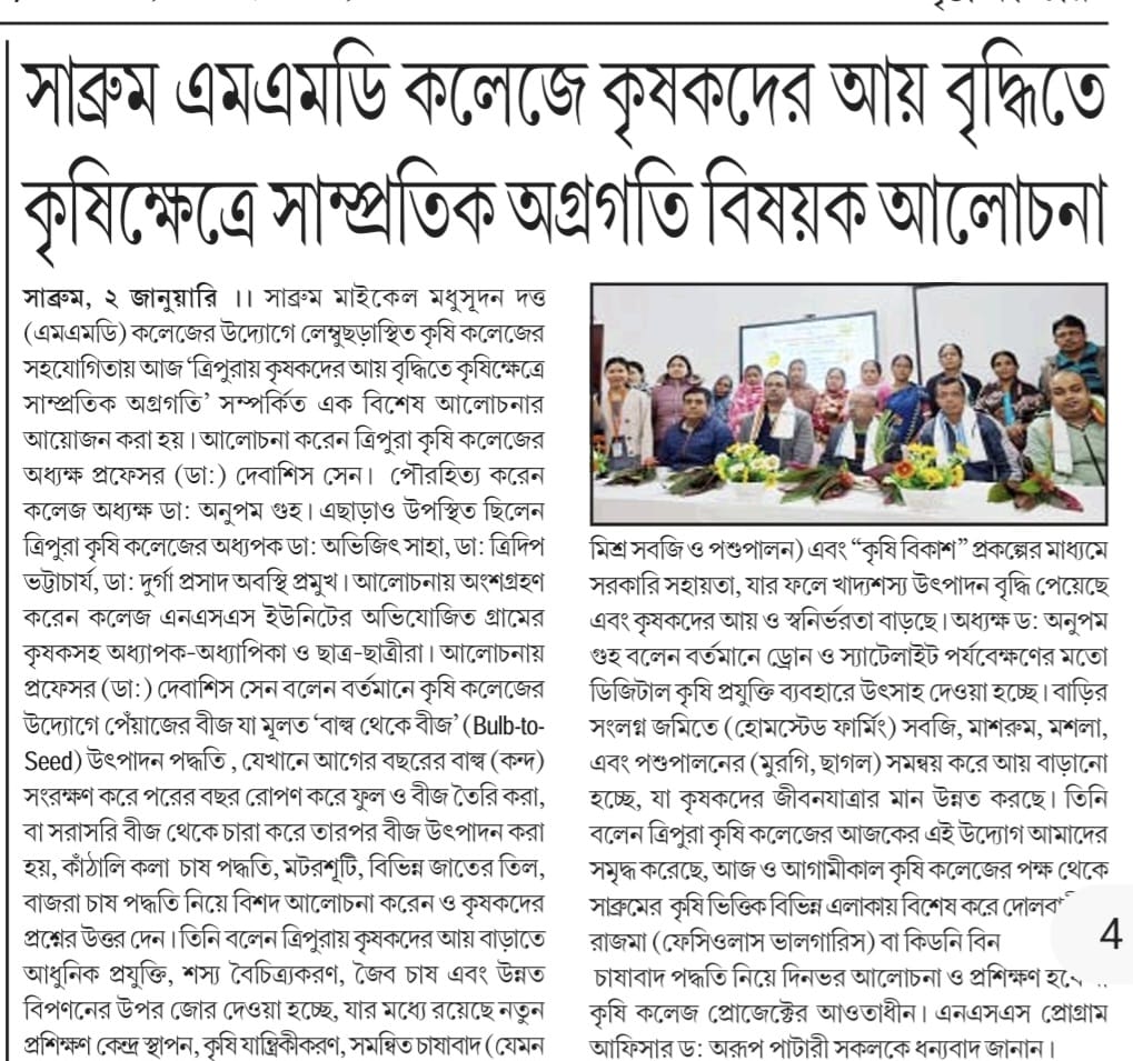 - 01/01/2026 Notice to attend the Invited Lecture on Recent progress in Agriculture for multiplying farmers income in Tripura