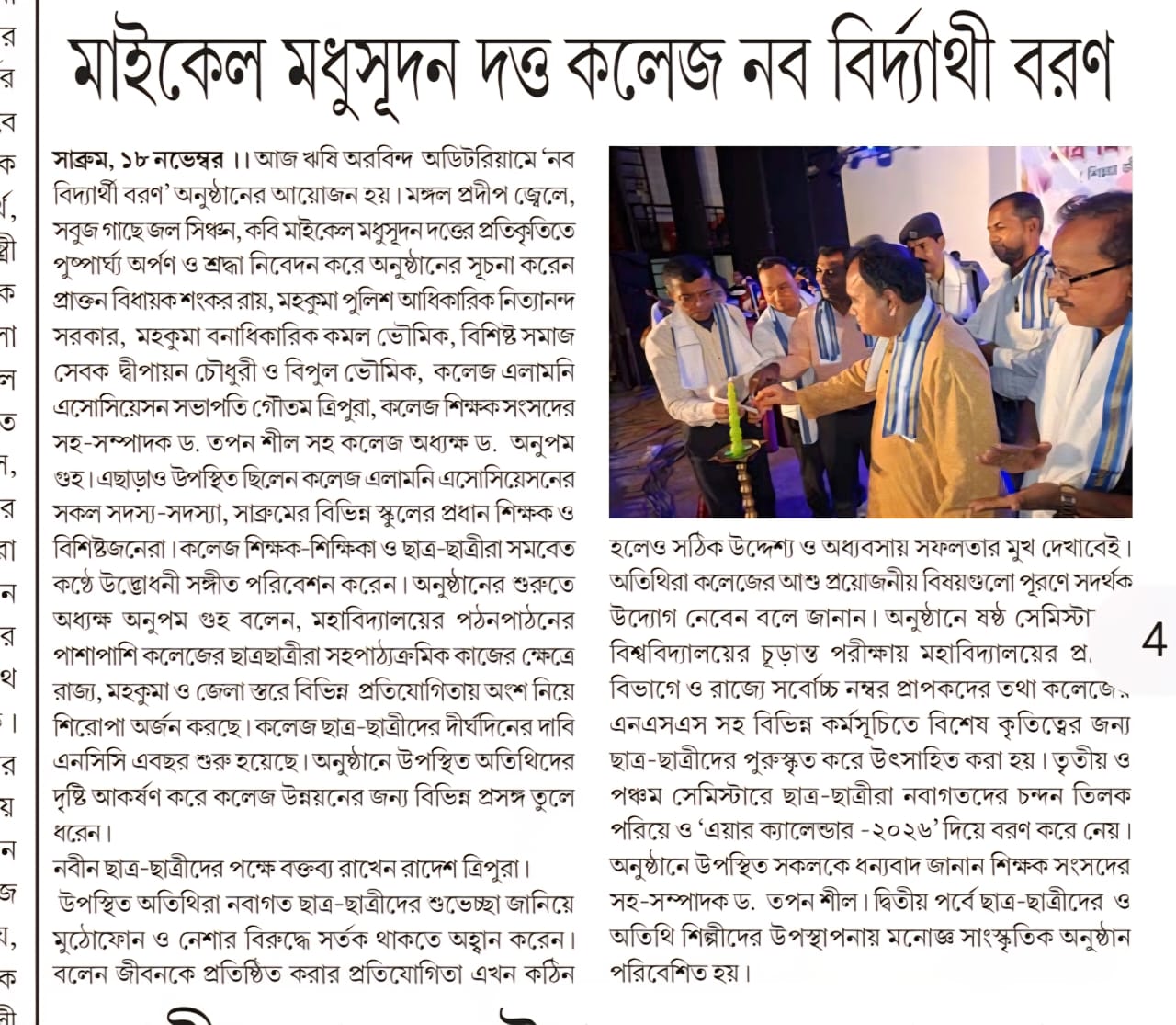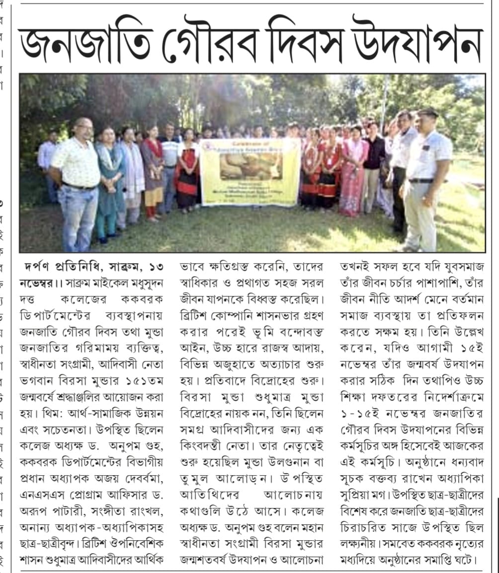 - 14/11/2024 Notice to attend Special Programme on College Campus by Akashvani Bilonia, Belonia South Tripura